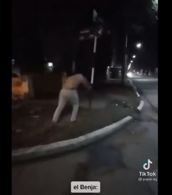 El registro fue subido a la red social de videos editados Tik Tok, y rápidamente fue identificada la esquina en la que el joven Benjamín derribó la señalética. Mientras que sólo pudieron precisar el nombre de pila del protagonista del video.