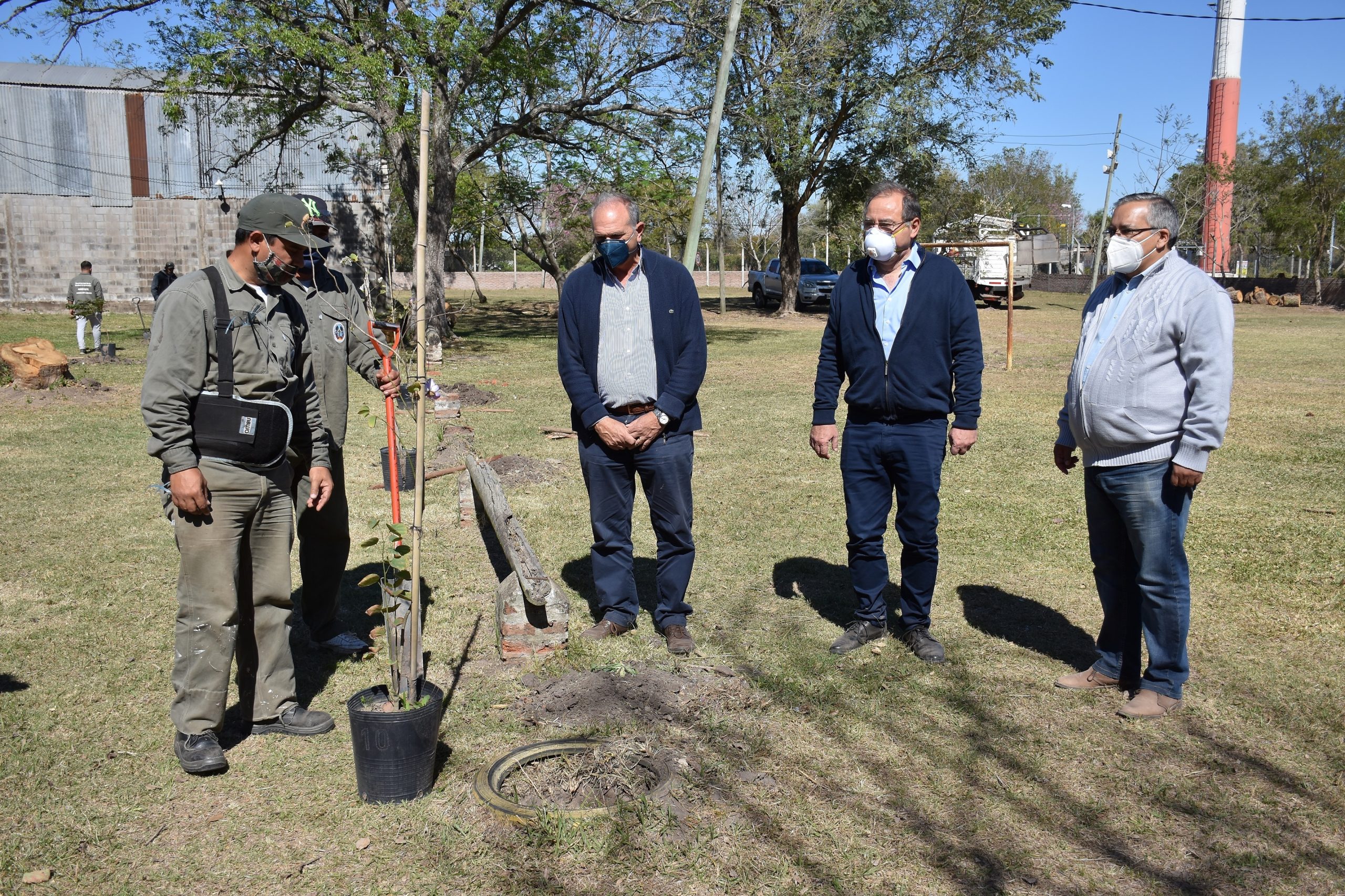 El intendente Eduardo Tassano y el viceintendente Emilio Lanari compartieron con vecinos del barrio Doctor Montaña la plantación de 20 árboles, en el Colegio Privado Católico del Santísimo Sacramento, ubicado en el cruce de las calles Lara y Aristóbulo del Valle, como parte del plan de arbolado urbano implementado por la Municipalidad.