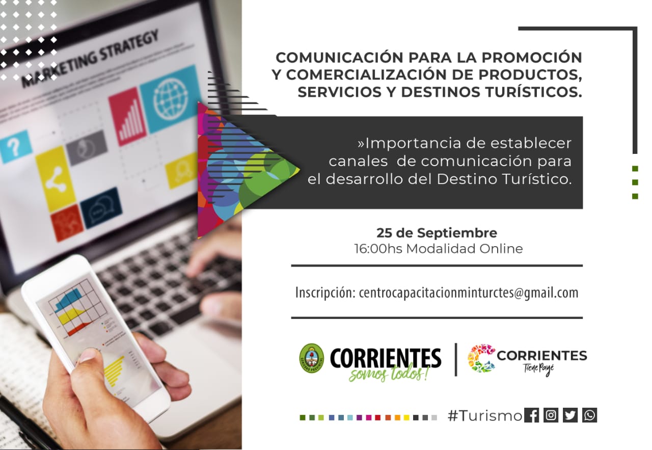 Se encuentra abierta la inscripción para el curso Comunicación para la Promoción de Productos, Servicios y Destinos Turísticos que se realizará de manera libre y gratuita a través de la plataforma Zoom el próximo viernes 25 de septiembre a las 16 horas. Allí se expondrán las herramientas digitales disponibles a la hora de planificar el posicionamiento de marca.