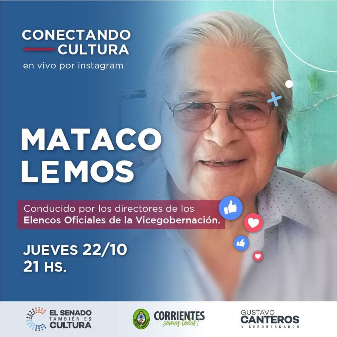 Las charlas se transmiten en vivo a través de la cuenta de Instagram de El Senado También es Cultura y el próximo encuentro virtual será este jueves 22, a partir de las 21 hs, y tendrá como protagonista al gran Héctor Reyes “Mataco” Lemos, profesor de danzas nativas, con una vasta trayectoria como bailarín y fundador de la Academia Mataco Lemos en Corrientes, donde se han formado importantes bailarines folclóricos. Esta vez estará acompañado por Rodrigo Gemignani, director del Ballet Juvenil de la Vicegobernación.