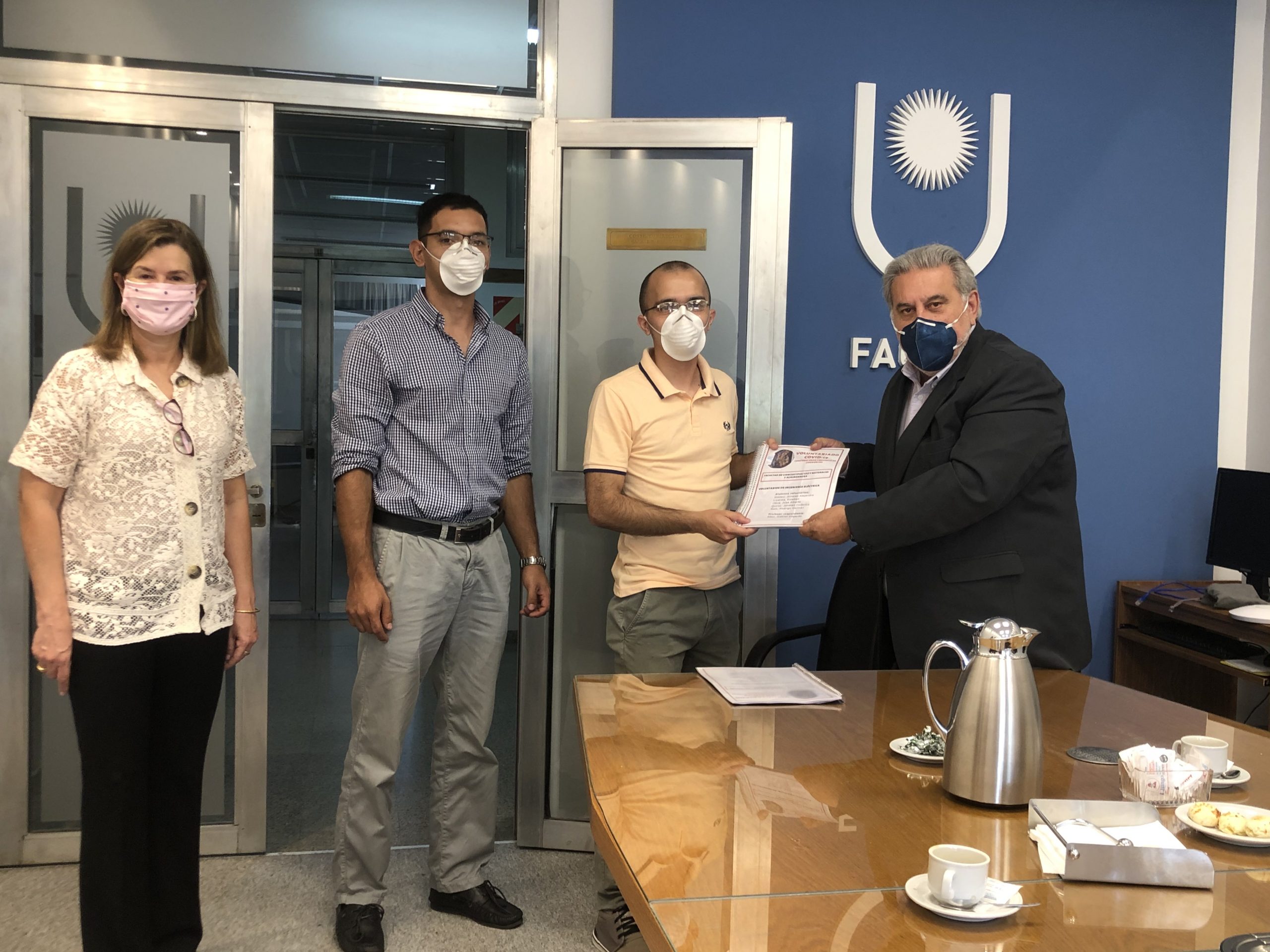 Estuvieron presentes en la reunión; el vice decano de FaCENA, Enrique Lafont, el Subsecretario de Innovación y Desarrollo Tecnológico del Ministerio de Ciencia y Tecnología de Corrientes, Sergio Alegría, el Secretario de Extensión de FaCENA, Jeremías García Cabrera y el Subsecretario de Infraestructura, Seguridad y Salud en el Trabajo, Abel Esquivel.