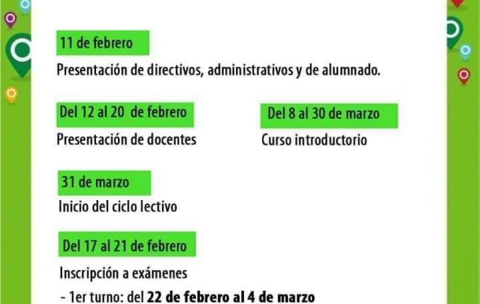 Para el 17 de febrero, en tanto, se prevé la concurrencia de los estudiantes que deben realizar el ciclo de complementación de contenidos. Se trata de los alumnos que deberán recuperar, debido a que no aprobaron los exámenes jurisdiccionales.