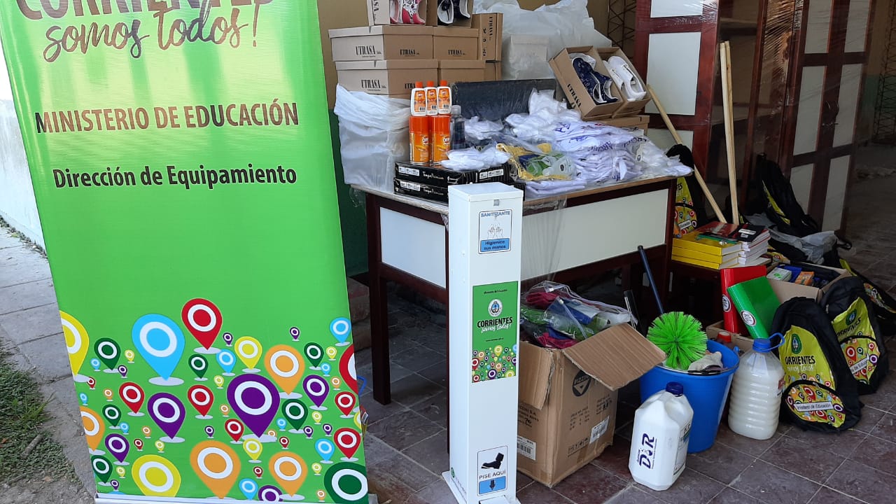 En esta oportunidad los elementos sanitarios se entregaron en el marco de la vuelta a la presencialidad segura, el kit consistió en un Totem expendedor de alcohol, pistola thermometer infrared, alfombra sanitizante, elementos de limpieza para la escuela, kit sanitizante para alumnos, barbijos, set de útiles escolares, banderas de izar, elementos deportivos, administrativos, botiquín de primeros auxilios.