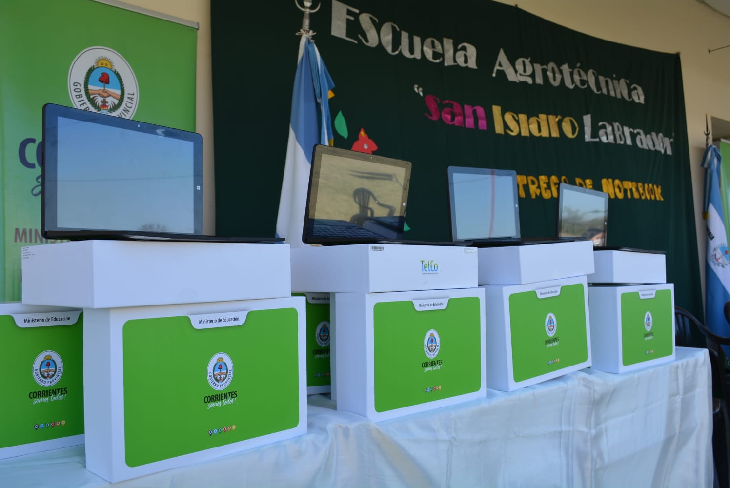 En la mañana de este jueves, la ministra de Educación Susana Benítez presidió el acto de entrega de notebooks a los alumnos de la Escuela Agrotécnica y módulos que contienen tablets (Tabis) para el Jin Nº 12 en San Isidro. Así como también se realizó la entrega de elementos escolares, bibliográficos y sanitizantes a las escuelas N°948 “José Hernández” y N°526 “Dr. Diego Nicolas Díaz Colodrero”